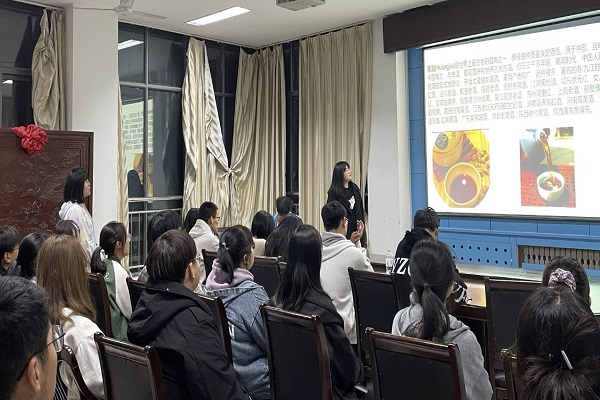 会议开始,姜春晓会长首先为大家科普了一些关于酿造的知识,阐述了黄精与黄酒的区别,以及各自的好处。还为大家讲述了一下制作黄酒的过程,以及生活中比较常见的褐变反应。会长以几张“食物变黄”的照片开始讲起,通过了解身边普通事物的现象让我们更好地认识褐变反应。最后讲到了大家都爱喝的桂花酿,同学们兴致勃勃,会长不仅向大家阐述了桂花酿与桂花酒的区别,还简述了桂花酿的酿造方法。讲解之后同学们踊跃提问,会长耐心解答,良好地互动使知识科普更深入,同学们对于知识探求的兴趣高涨。