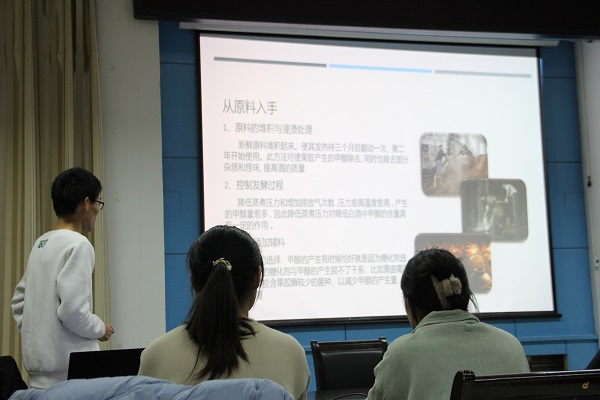 本次活动由青春社团主席李绍昱向大家介绍了自酿酒杂醇的产生以及去除。内容包括什么是杂醇,酒中常见杂醇的类型,各种醇类物质的产生以及去除方法。在活动过程中李绍昱主席以通俗易懂的学术语言,使协会成员对自酿酒中产生的杂醇和如何去除杂醇有了更好的理解。成员们在会议过程中认真听讲,反应良好,使本次会议取得了很好的效果。