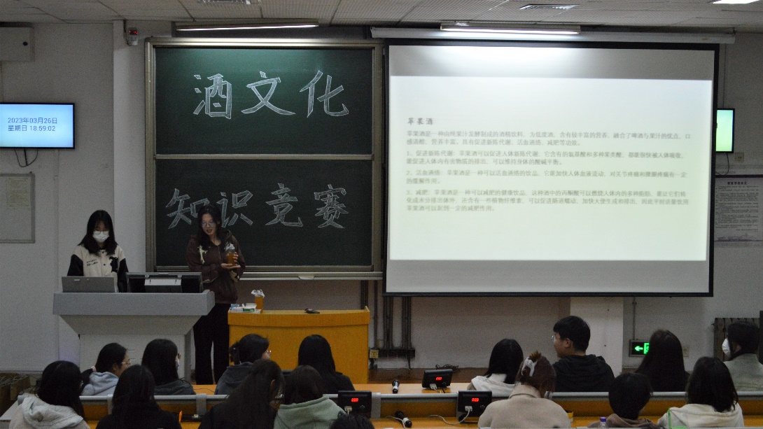 为加强同学们对酒文化了解,增强国家传统酒文化的自信感,展现当代大学生的知识多元化面貌。3月26日晚,生命科学学院酿造协会于教学南楼举办了“品深巷酒香,承中华之魂”酒文化知识竞赛活动。