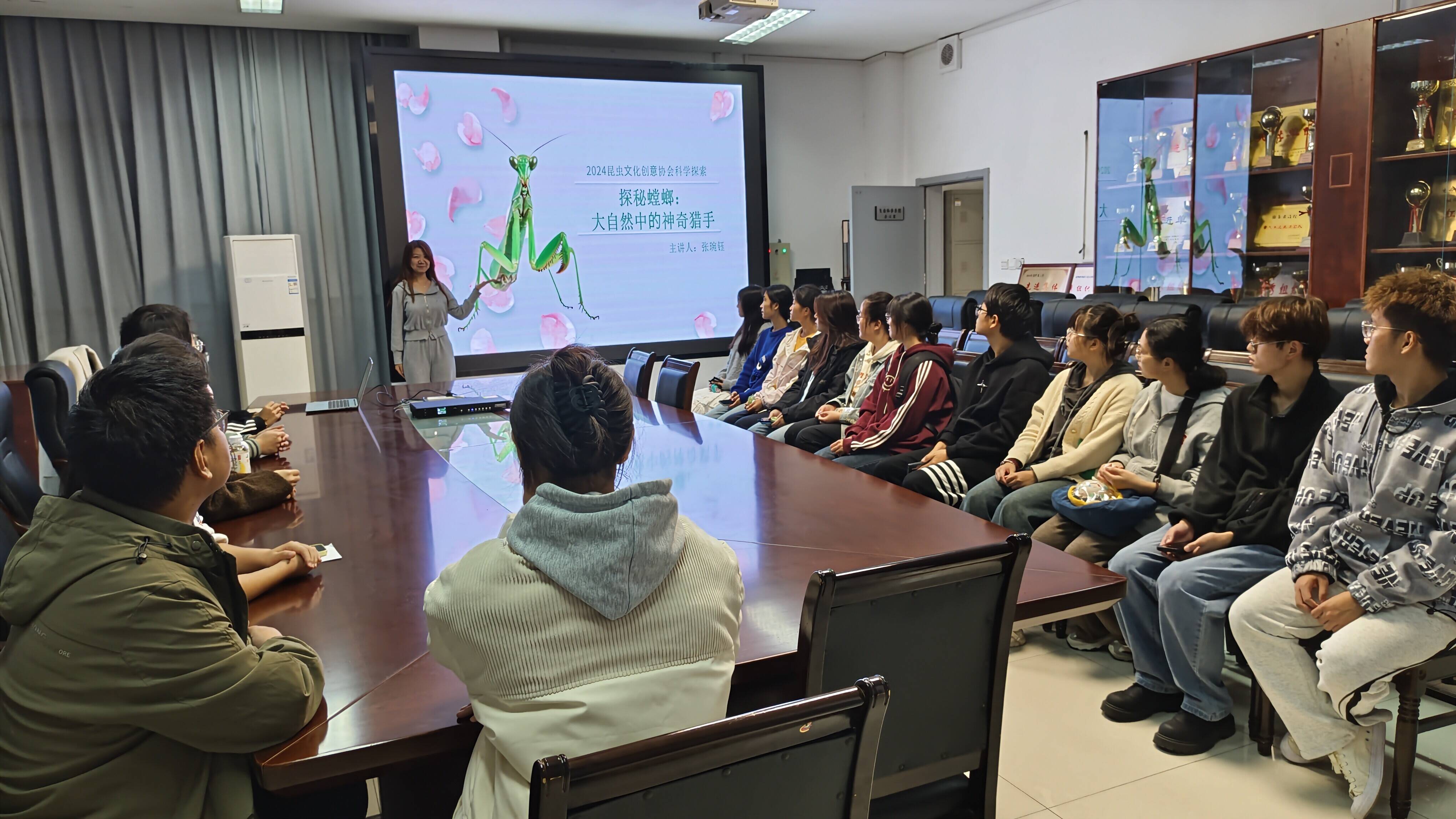 为了加深同学们对生物知识的了解,丰富同学们课外生活,提高同学们对探索昆虫知识的兴趣,2024年11月3日,昆虫文化创意协会开展了一场深入的科学探索活动,将焦点对准了大自然中的神奇猎手——螳螂。昆虫文化创意协会全体成员踊跃地参加了此次活动。