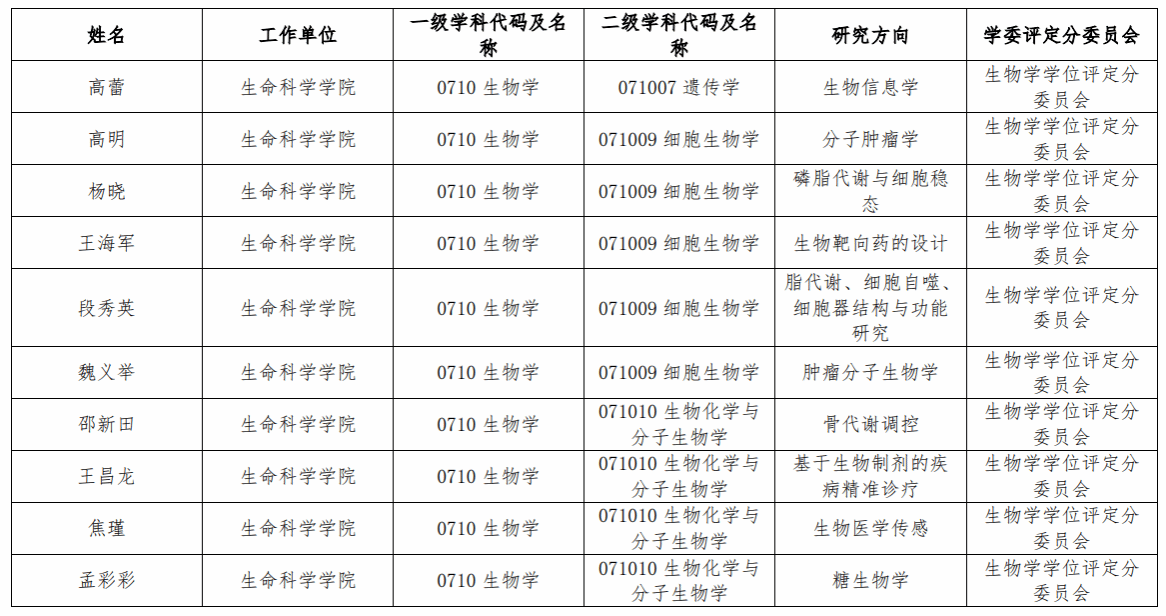2025年硕士研究生导师招生资格生物学学位评定分委员会拟通过名单公示
