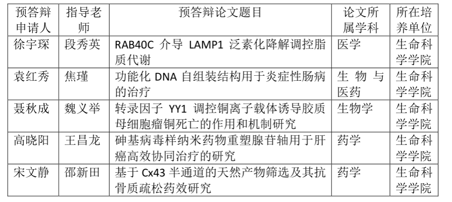 为进一步加强学位论文过程管理,完善研究生学位论文质量监督体系,保障研究生学位论文水平和学位授予质量,生命科学学院将在硕士研究生提交硕士学位申请前进行学位论文预答辩,具体方案参照《bobapp1中国有限公司(山东省医学科学院)研究生学位论文预答辩管理办法》,现将相关事项安排公布如下: