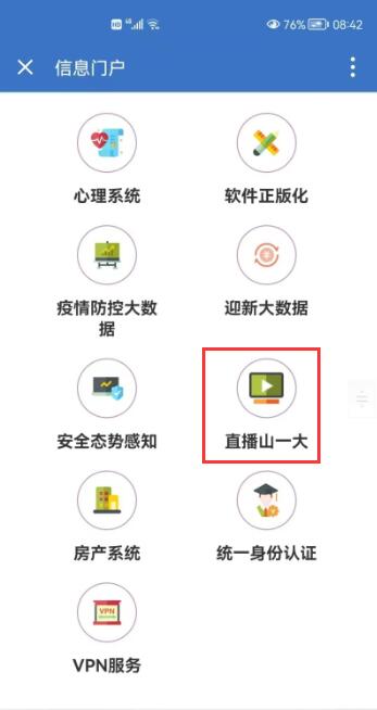 登录信息门户,下拉页面,找到业务直通车—直播山一大