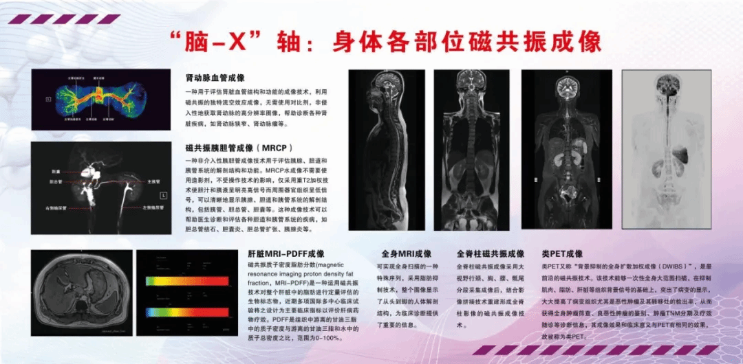 同时磁共振系统对于身体各个器官的成像技术日臻成熟,对于开展“脑-X”轴研究,探索中枢神经系统与躯体其他系统之间的密切联系大有帮助(图3)。