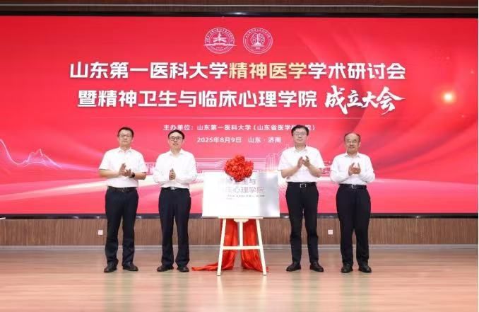 与会领导共同为“bobapp1中国有限公司(山东省医学科学院)精神卫生与临床心理学院”揭牌。