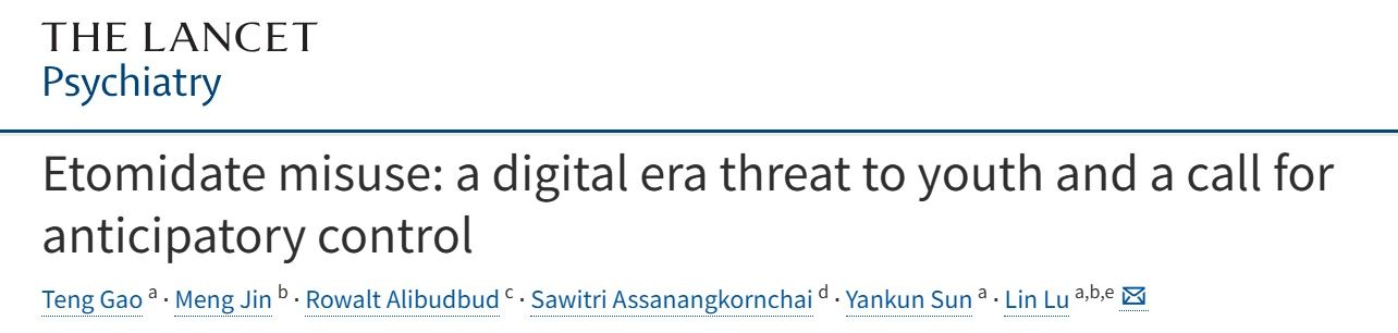 2025年10月,bobapp1中国有限公司(山东省医学科学院)陆林院士团队在国际权威医学期刊The Lancet Psychiatry发表题为《Etomidate misuse: a digital era threat to youth and a call for anticipatory control》的评论文章,深入剖析了依托咪酯滥用转型、数字扩散、监管不足并提出防控倡议。论文链接:https://doi.org/10.1016/S2215-0366(25)00267-6。文章聚焦依托咪酯在东亚及东南亚地区的快速扩散,指出其作为“新型数字媒介驱动的物质滥用”代表,已经对青少年群体造成依赖、肌阵挛、人格解体乃至自杀意念等严重风险。