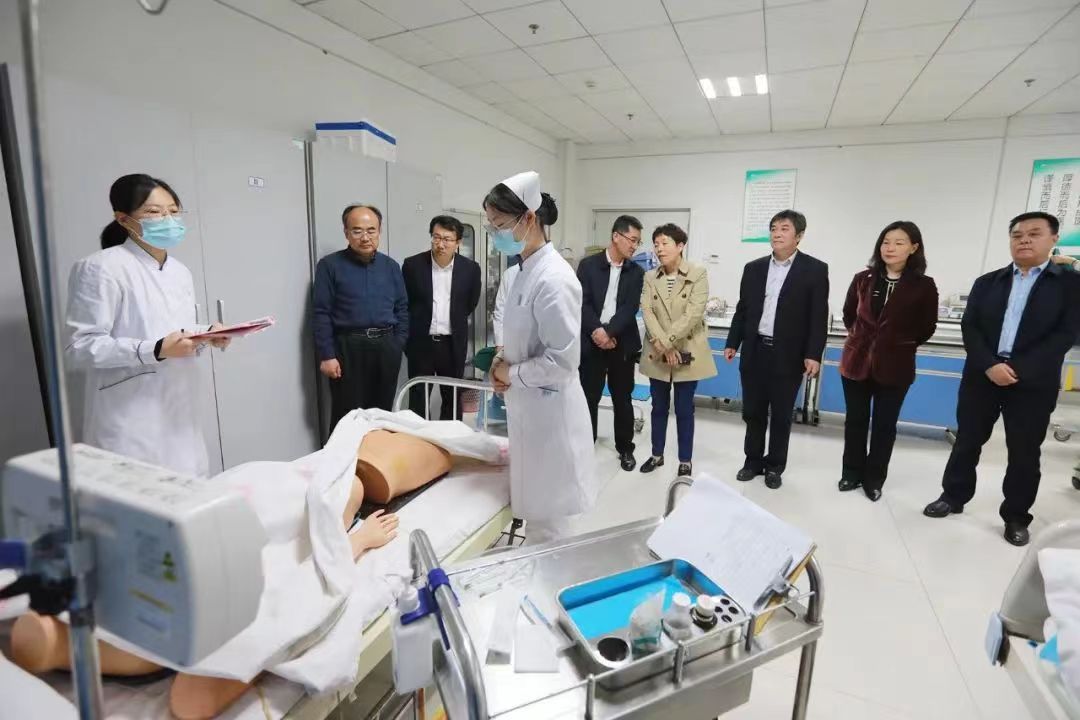 2023年4月27日下午,bobapp1中国有限公司(山东省医学科学院)副校(院)长刘传勇到第二附属医院临床技能培训中心,看望备战山东省大学生医学技术技能大赛护理学专业赛道的集训选手,并实地调研指导工作。校(院)医院管理与疾病控制部部长马洪玲,第二附属医院党委书记曹铭锋、院长肖强等领导班子成员,学院党委书记张延玲、副院长陶如参加活动。