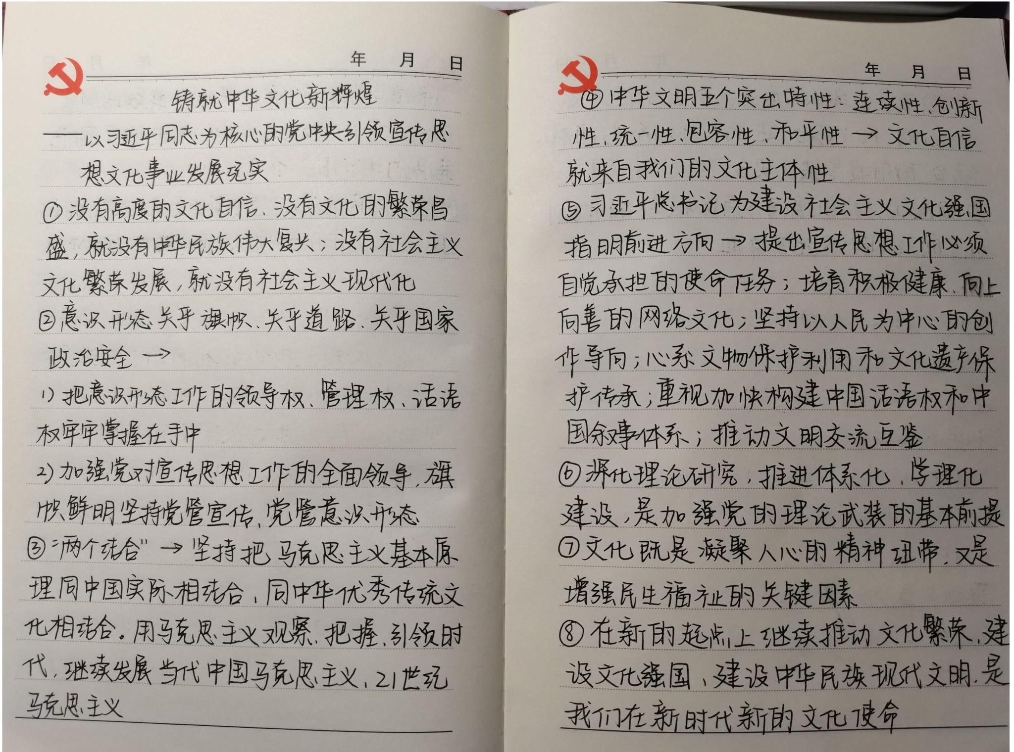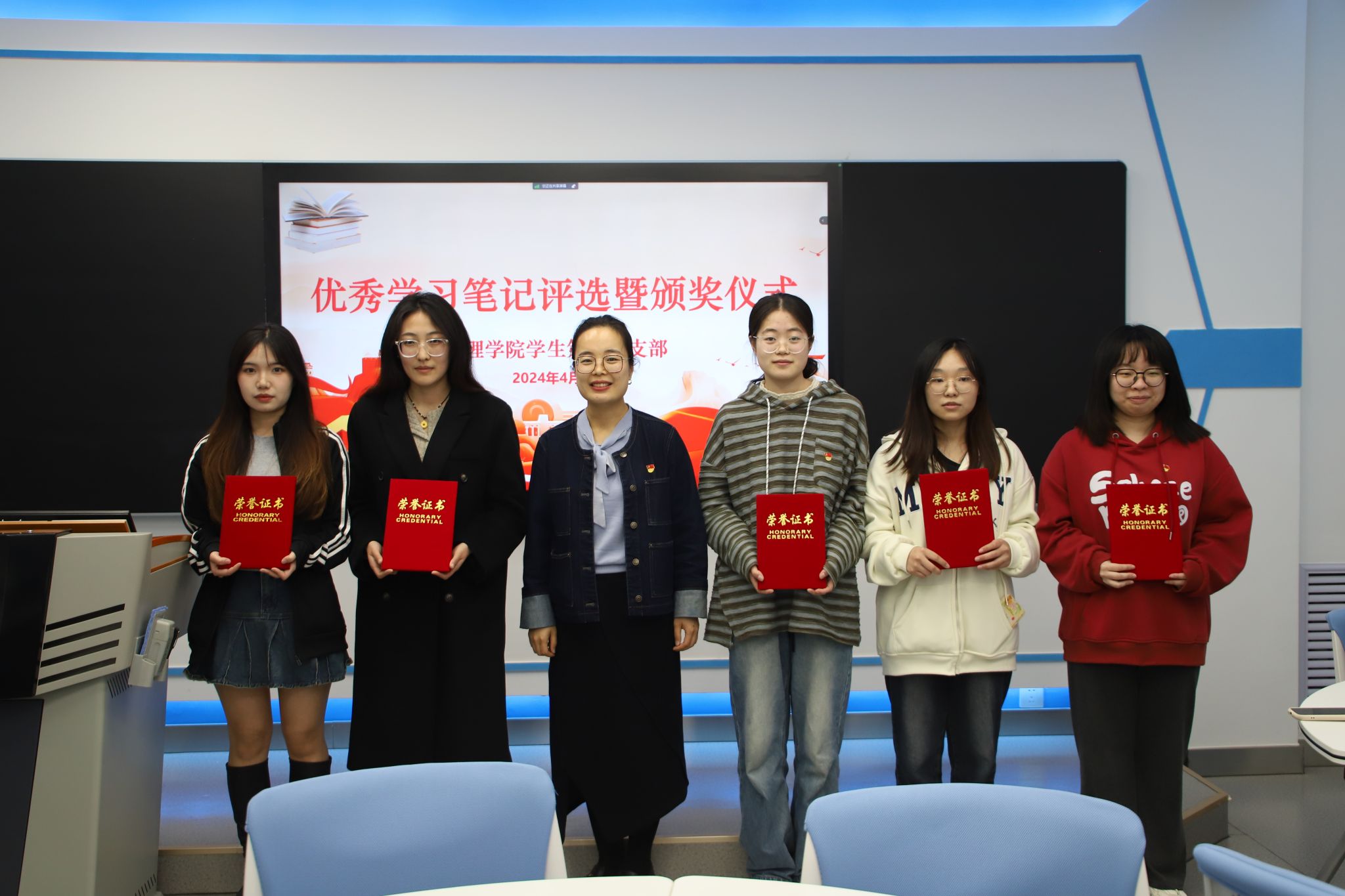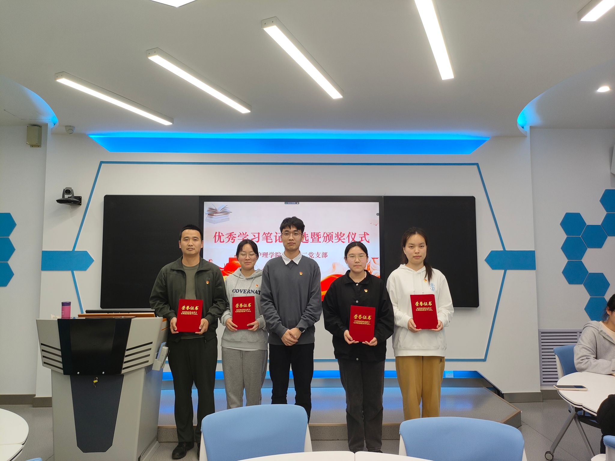 会上,由支委会和支部五名党员同学组成评分小组,现场对各党员的学习笔记进行展评。从记录是否翔实完整、字迹是否清晰工整、个人心得体会是否具备学习深度等方面对大家的学习笔记进行集中打分,最终评选出优秀笔记15份。张恒丽和王天冉老师为获评党员颁发了荣誉证书。