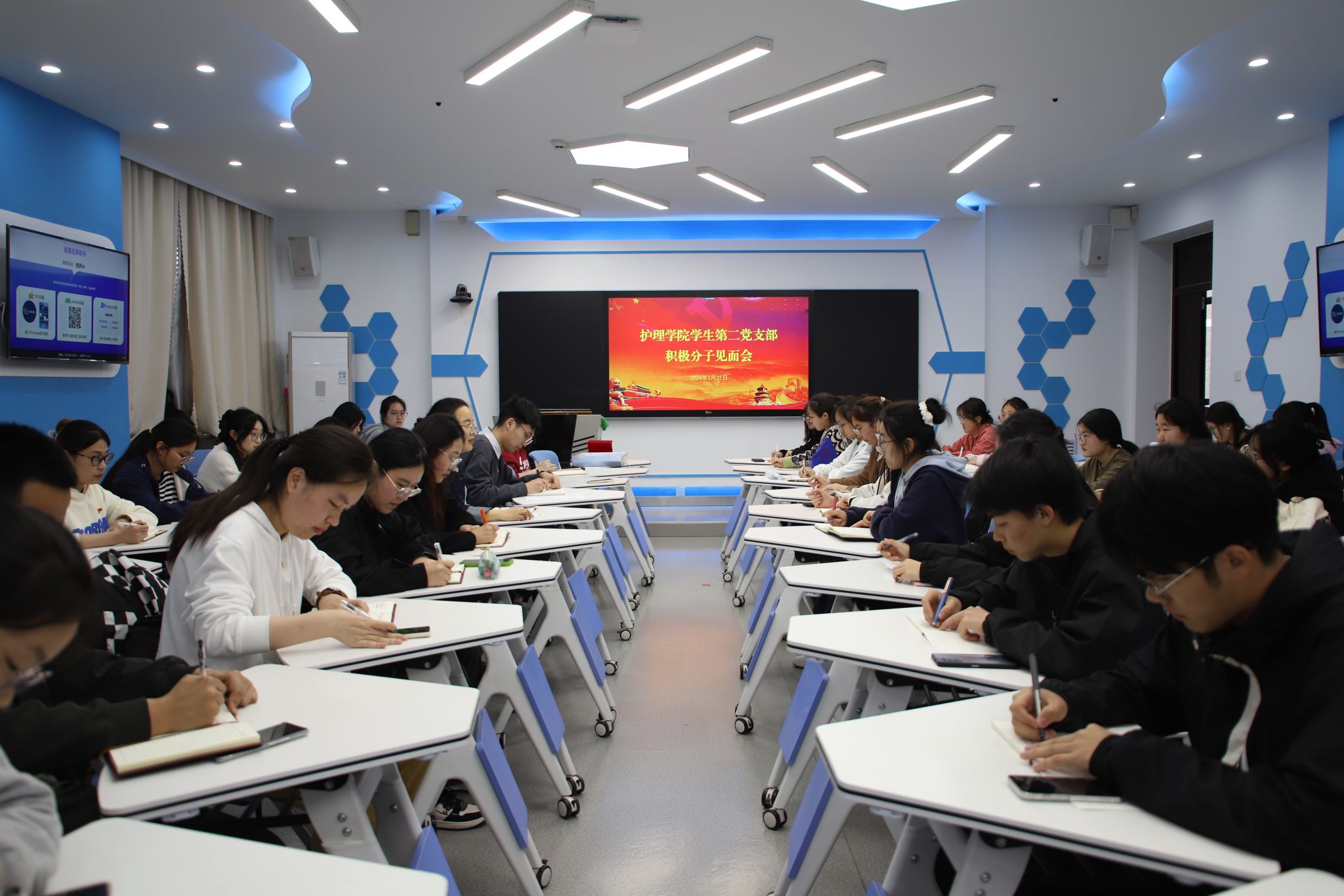 护理学院学生第二党支部辅导员王天冉、全体学生党员和30名入党积极分子参加会议。