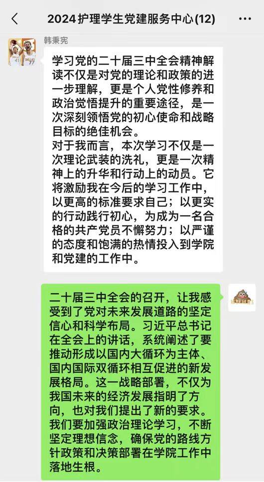 学生党建服务中心的同学们,学习结束后积极发言分享自己的心得体会。“本次学习不仅是一次理论武装的洗礼,更是一次精神上的升华和行动上的动员。它将激励我在今后的学习工作中,以更高的标准要求自己,以更实的行动践行初心,为成为一名合格的共产党员不懈努力。”韩秉宪满怀激动的说。宋雯悦向大家倡议,“我们要加强政治理论学习,不断坚定理想信念,确保党的路线方针政策和决策部署在学院工作中落地生根。”……