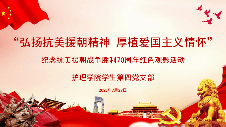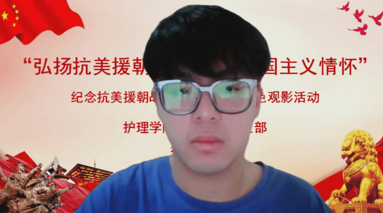 7月27日,护理学院学生第四党支部通过线上方式开展“弘扬抗美援朝精神 厚植爱国主义情怀”纪念抗美援朝战争胜利70周年红色观影主题党日活动。党支部书记赵学超主持。