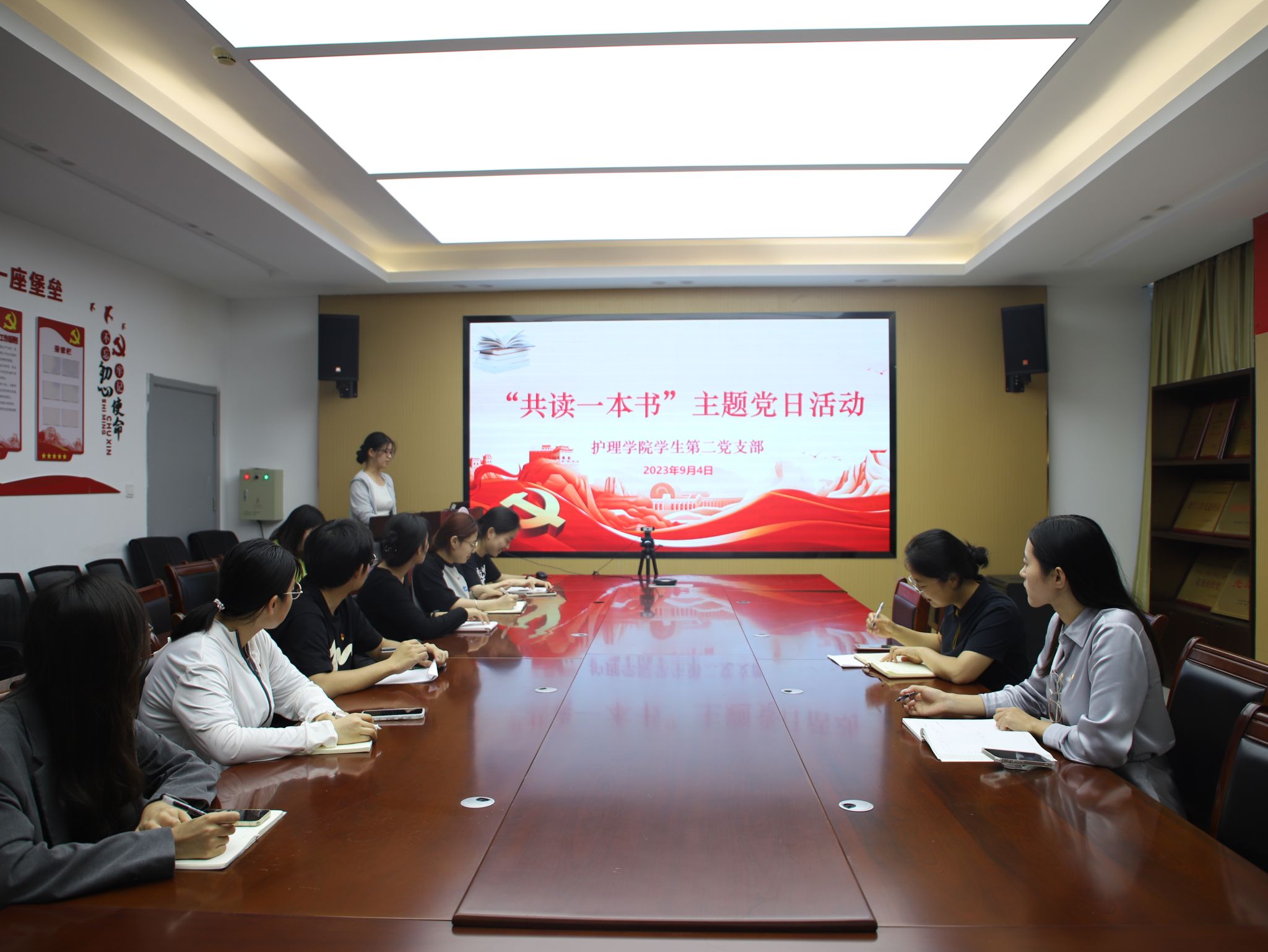 为深入学习中国共产党历史,进一步引导和推动党员在日常阅读中提高思想素质和理论水平,持续营造爱读书、读好书、善读书的浓厚氛围,9月5日,护理学院学生第二党支部组织全体党员开展“共读一本书”主题党日活动。党支部副书记王雯雯、支部学生党员参加活动,党支部书记张恒丽主持。