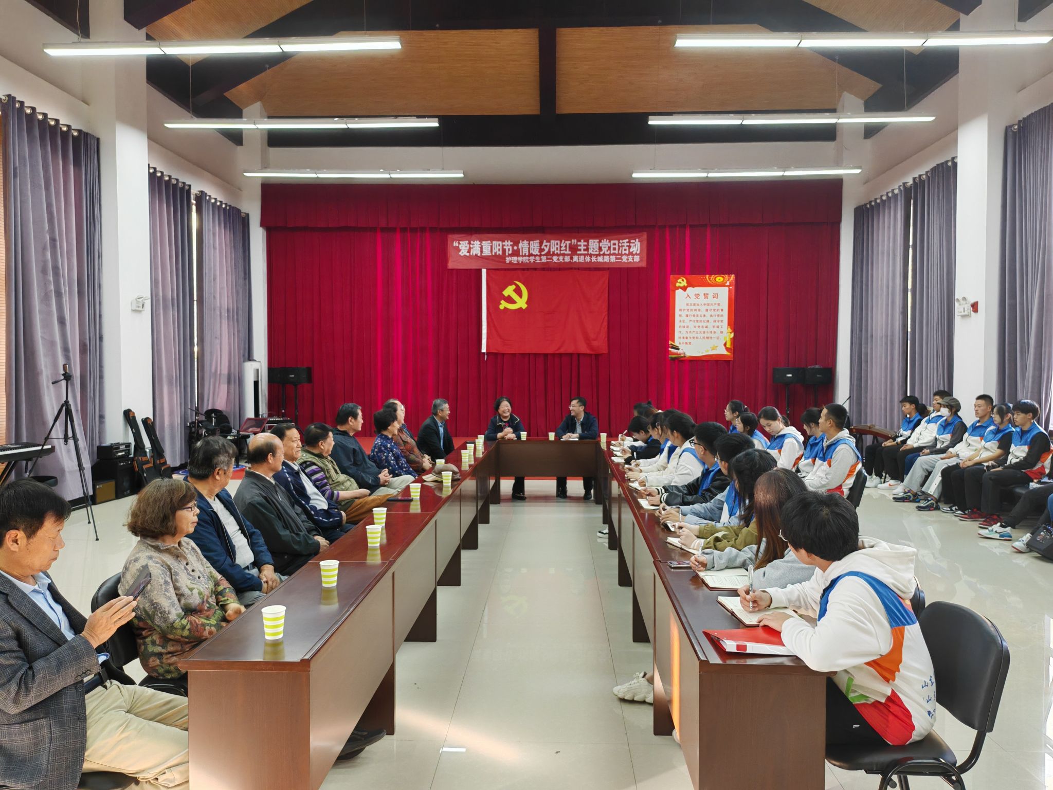 为深入开展学习贯彻习近平新时代中国特色社会主义思想主题教育,发挥老党员优势作用,引导学生党员深学细悟笃行,凝聚同心向党的奋进力量,温情重阳,传承敬老传统,10月22日,护理学院学生第二党支部与离退休长城路第二党支部联合开展“爱满重阳节·情暖夕阳红”主题党日活动。护理学院党委书记张延玲主持。
