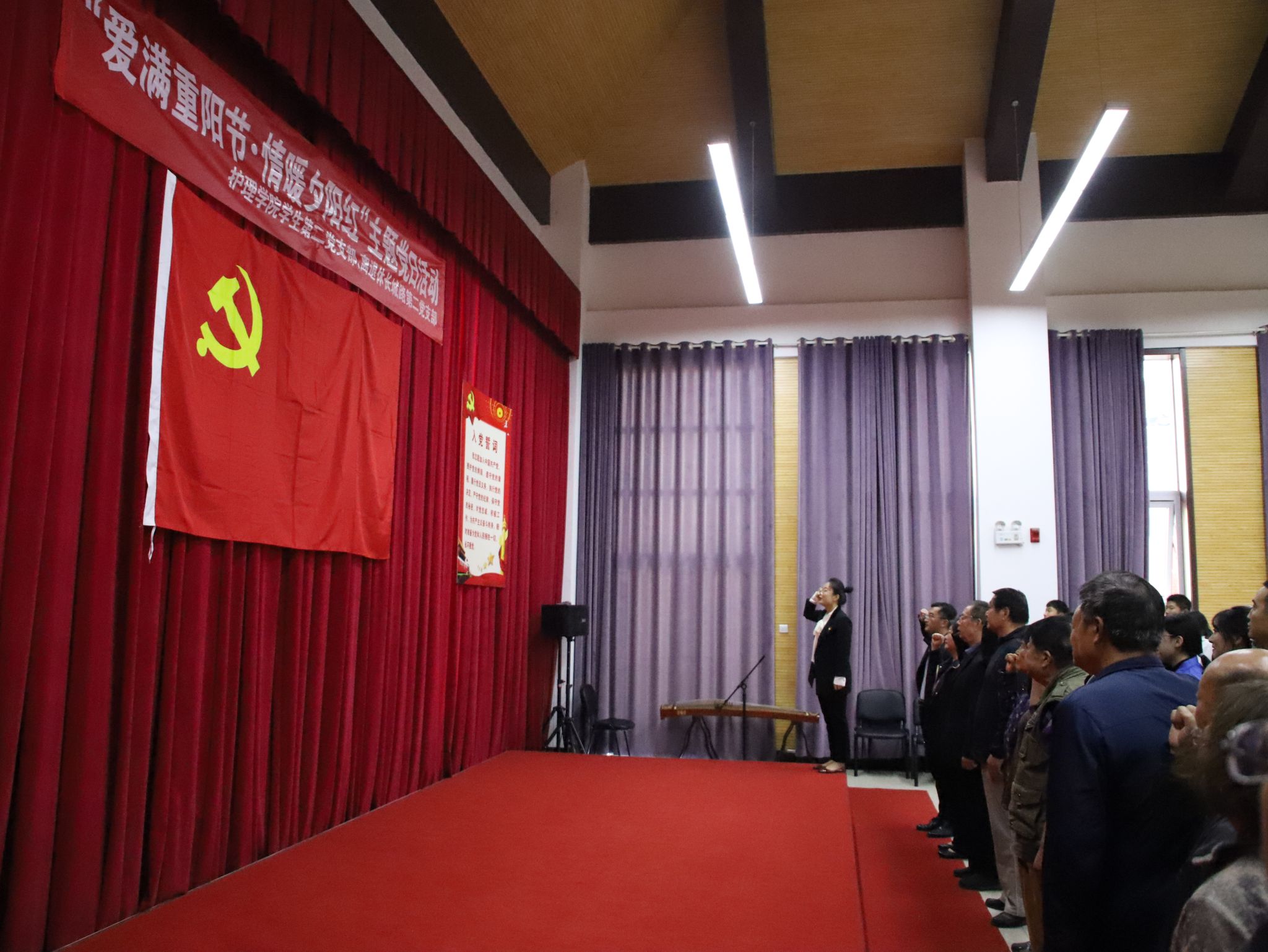 张延玲首先对参加本次活动的各位老党员表示衷心感谢,祝大家节日快乐、平安健康,随后,在护理学院学生第二党支部书记张恒丽的带领下,全体党员面向鲜红的党旗,高举右拳重温入党誓词,每位党员神情庄重、精神饱满、声音铿锵、句句千钧。每位党员再次接受了心灵的洗礼,纷纷表示将不断锤炼忠诚干净担当的政治品格,永葆共产党员的先进性,立足本职岗位发挥先锋模范作用、作出应有贡献。