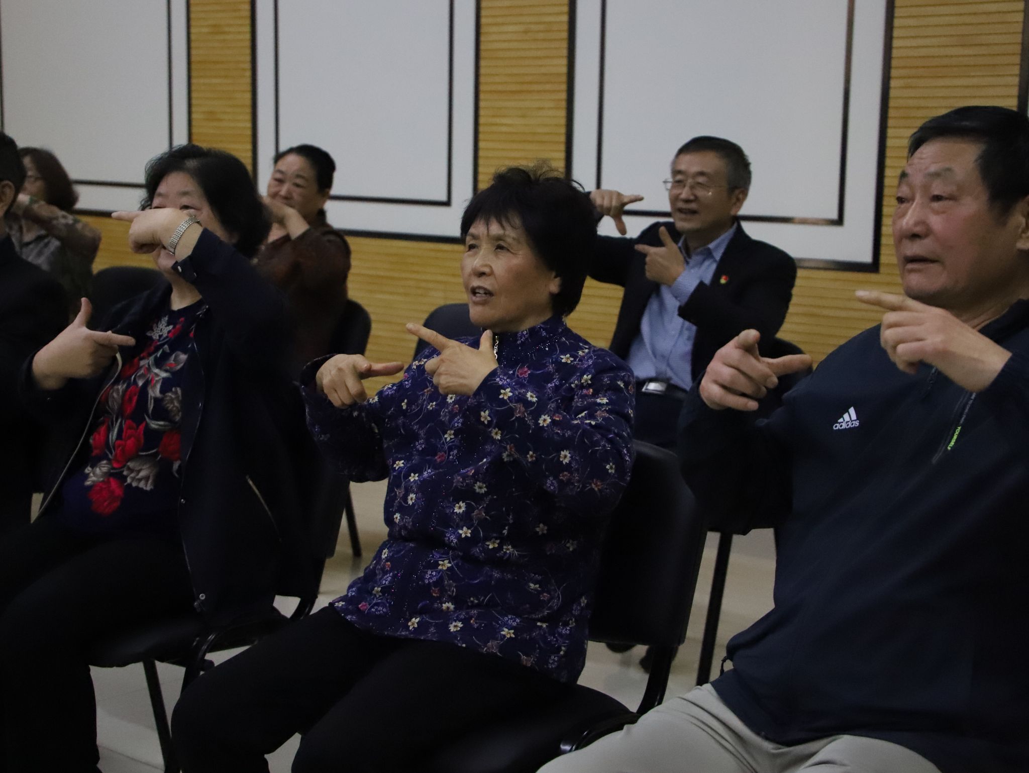活动的最后,由学生党员带领老党员学习手势舞《美丽中国》。各位学生党员细致地为老党员指导动作,大家用心学习,动作从陌生到熟悉,再到最后的整齐划一,一气呵成。新老党员用自己的实际行动祝福伟大祖国母亲繁荣昌盛。