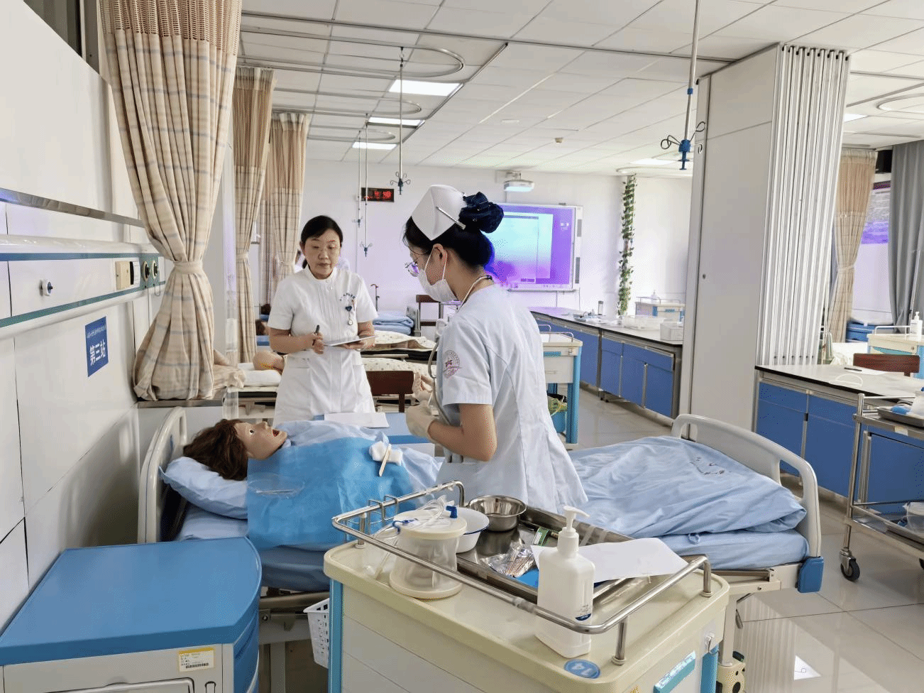 培训中以案例引导、项目驱动、小组协作形式进行,白天教师理论讲授、示教,学生分组训练,晚上组织小组反思、讨论,完成线上小组作业。同学们学习热情高涨,在训练中认真规范每一项技能、每一个动作、每一处细节,重视人文关怀与健康教育。