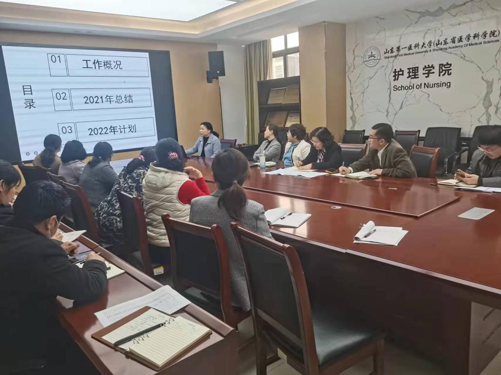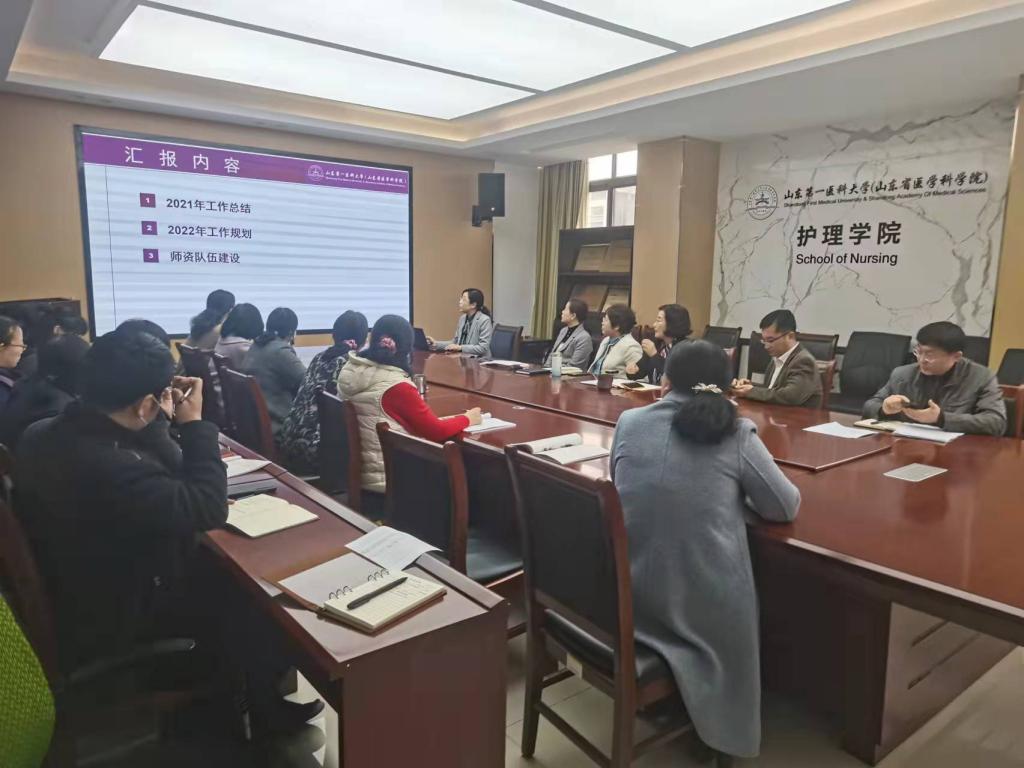 院长柳韦华指出,要认真学习校(院)2022年工作会议和全面从严治党工作会议精神,深刻理解校(院)工作部署,切实把思想和行动统一到校(院)党委确定的工作思路和重点任务上来,推动学院各项工作落到实处。她对各科室2021年工作及2022年工作思路给予充分肯定,要求对照今年目标责任书,对标对表做好重点工作,并对存在的共性问题提出意见建议和改进要求。一是在师资方面,目前学院师资队伍人员不足,各科室要进一步解放思想,坚持引育并举,进一步提高博士比例。要充分利用好附属医院资源,密切沟通联系,共建护理学科。二是在教育教学方面,老师们要进一步做好个人规划,明确自身定位和目标,积极参加各项课题申报,积极指导本科生研究生竞赛活动和科研课题,指导学生发表高质量论文,不断提高人才培养质量和水平。三是在科研方面,老师们要进一步增强科研意识,努力提高科研水平,力争在科研的道路上取得新突破,不断推动自身专业成长。