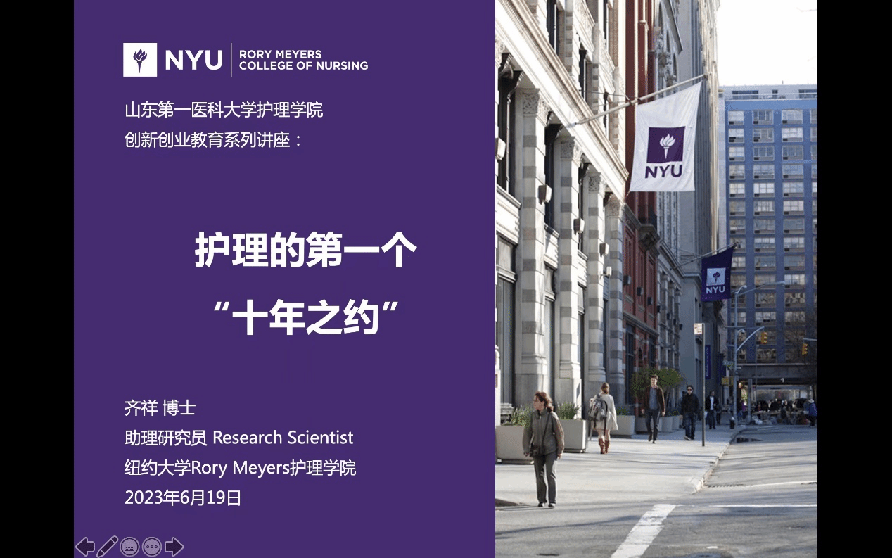 学院双创教育周第一场报告是来自纽约大学Rory Meyers护理学院助理研究员齐祥博士,题目是《护理的第一个十年之约》。齐祥结合自身的学习成长经历,介绍了为什么选择护理专业以及如何在学期间确定研究方向,并与大家分享了自己的研究成果和未来的研究规划。报告内容深入浅出,通俗易懂。同学们纷纷表示要以齐祥博士为榜样,积极投身科技创新,努力成为护理科研的生力军。