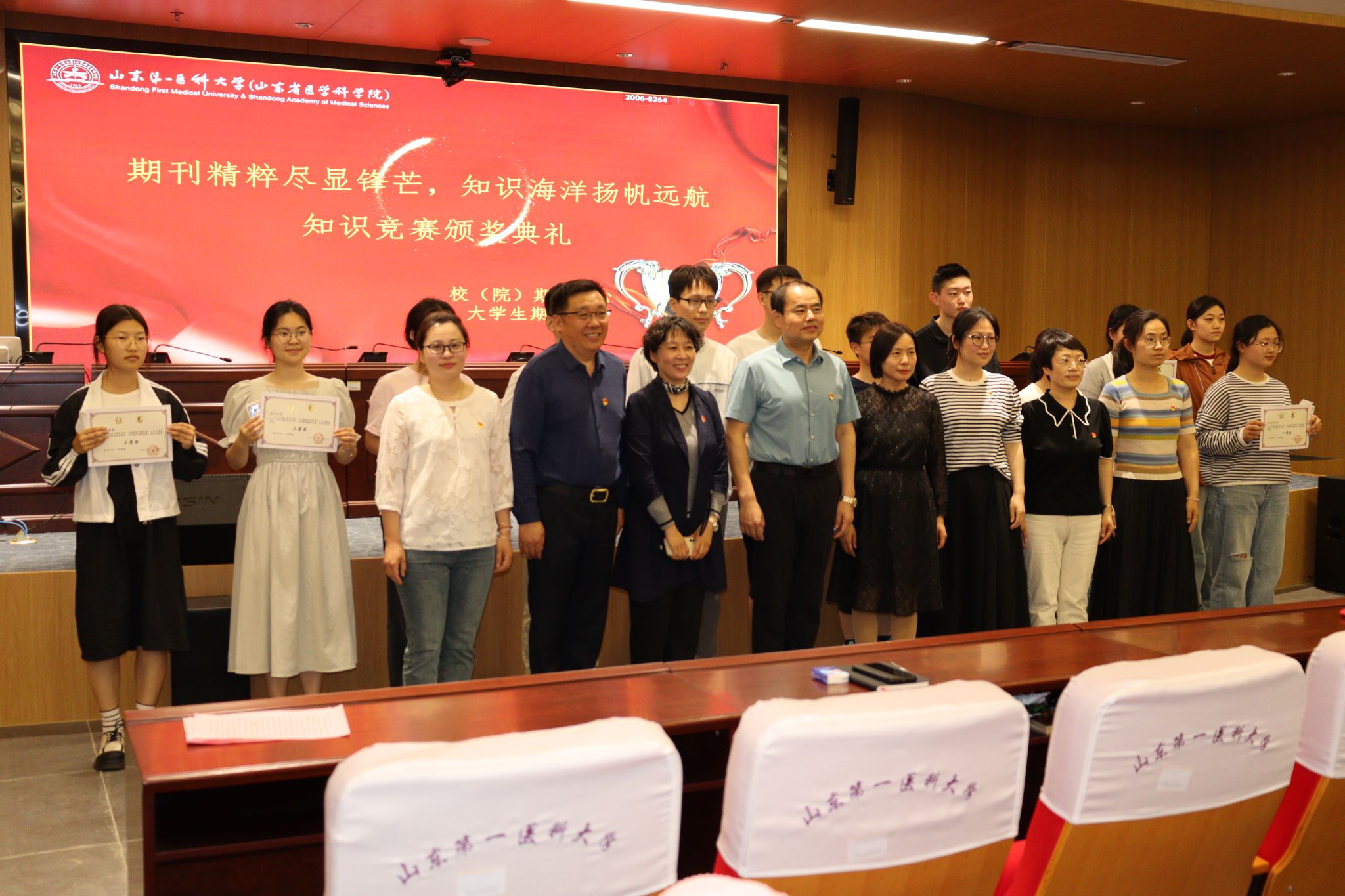 5月10日下午,颁奖典礼在图书馆576学术报告厅如期举行。颁奖典礼现场气氛热烈,校(院)期刊中心主任岳林明、副主任杨文燕,基础医学院团委书记韩馨,期刊中心编辑,协会成员以及众多学生代表齐聚一堂,共同见证这一荣耀时刻,并现场为获奖同学颁发了荣誉证书和奖品。