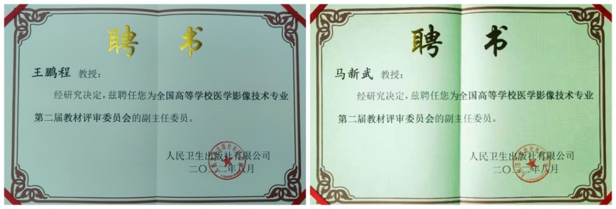 校(院)副校(院)长王鹏程教授、附属省立医院马新武教授当选全国高等学校医学影像技术专业规划教材第二届评审委员会副主任委员。