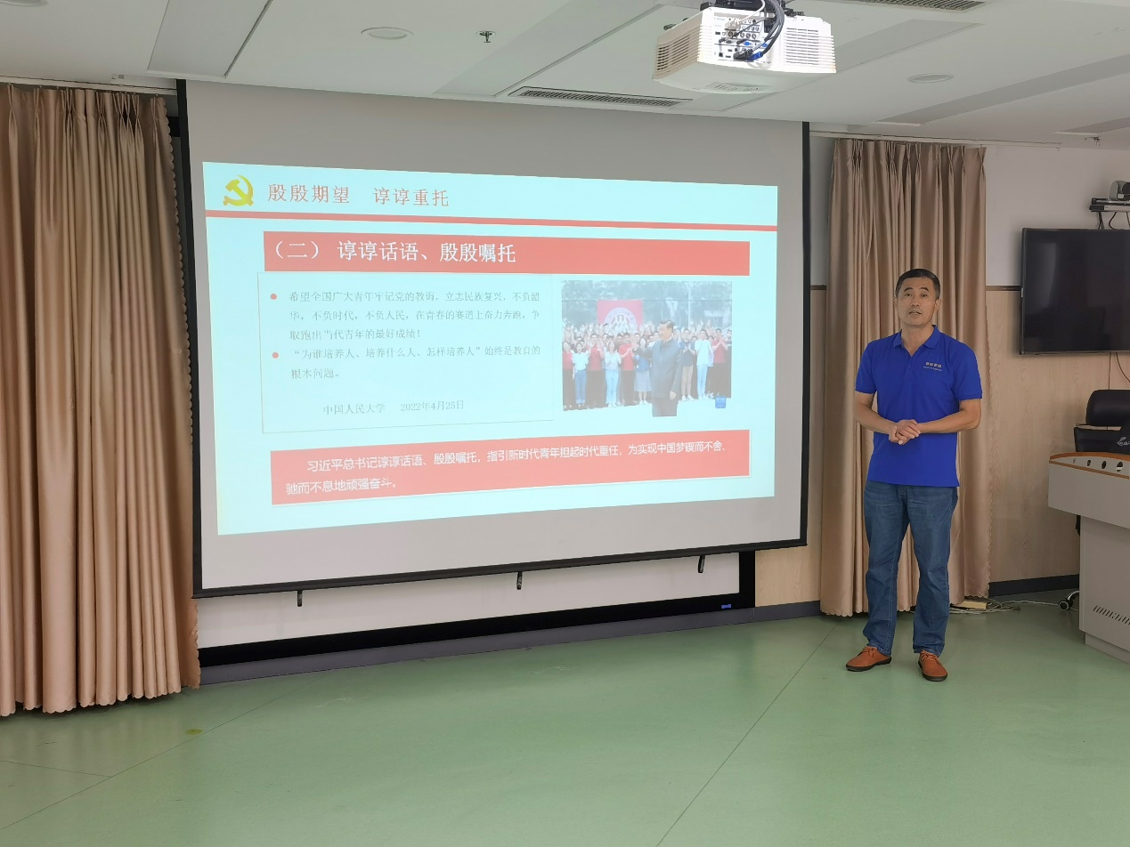 赵传华以“牢记嘱托跟党走 青春奋进新时代”为主题,分别从“殷殷期望,谆谆重托”“倾心呵护、与时俱进”“梦想召唤,不懈奋斗”等三方面展开讲解。他带领同学们回顾习近平总书记视察高校重要讲话、指示精神、谆谆教诲,引导学生提高政治觉悟,厚植爱国情怀。赵传华讲到,百年芳华,青春万岁。1919年,以先进青年知识分子为先锋的五四运动,唤醒了沉睡大地,开启了一个伟大的觉醒年代;1921年,一群平均年龄28岁的青年建立了中国共产党,开启了中国革命的光明道路,掀起了改天换地的巨澜;1922年,中国社会主义青年团成立,凝聚中国青年之志,紧随党的脚步,探索民族复兴的前程。翻开史册,一代又一代中国青年满怀对祖国和人民的赤子之心,在党的领导下,积极投身革命、建设、改革的伟大事业,用青春之我创造青春之中国、青春之民族,谱写了中国青年运动的壮美篇章。他说,百年漫漫征途,广大青年坚持党的领导,始终牢记初心使命,组织引导一代又一代青年走在时代前列,心系家国天下,谱写了一首首感人至深的青春赞歌。他讲到,党的十八大以来,习近平总书记始终立足于党和国家事业发展薪火相传、后继有人的战略高度,关心青年成长成才、谋划青年工作发展进步,激励广大青年在实现中华民族伟大复兴的时代洪流中踔厉奋发、勇毅前进。他提到,习近平总书记饱含深情、谆谆教诲、殷殷期望、言犹在耳,“青年是祖国的未来、民族的希望,也是我们党的未来和希望”;“让青春在为祖国、为人民、为民族、为人类的奉献中焕发出更加绚丽的光彩”“未来属于青年,希望寄予青年”;“青春理想,青春活力,青春奋斗,是中国精神和中国力量的生命力所在”;“只有当青春同党和人民事业高度契合时,青春的光谱才会更广阔,青春的能量才能充分迸发”;“青年是社会中最有生气、最有闯劲、最少保守思想的群体,蕴含着改造客观世界、推动社会进步的无穷力量”;“实现中国梦是一场历史接力赛,当代青年要在实现民族复兴的赛道上奋勇争先。”……