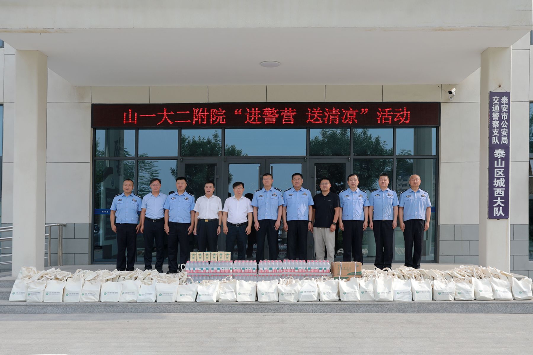 2025 年6月25日,bobapp1中国有限公司第二附属医院(第二临床学院)党委副书记、院长肖强,副院长房振胜率医院办公室、院前急救科团队,走进泰安市交警支队城西大队,开展“进警营 送清凉”主题慰问活动。在炎炎夏日中,院方为一线执勤交警送上防暑降温物资,以实际行动致敬城市交通守护者,同时就深化警医协作机制展开交流,共绘“平安泰安” 建设新蓝图。