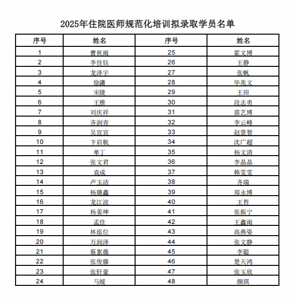 附件1:2025年住院医师规范化培训拟录取学员名单