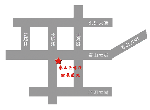 市内乘坐6路、8路、29路、33路公交车到泰山医学院附属医院站下车即是