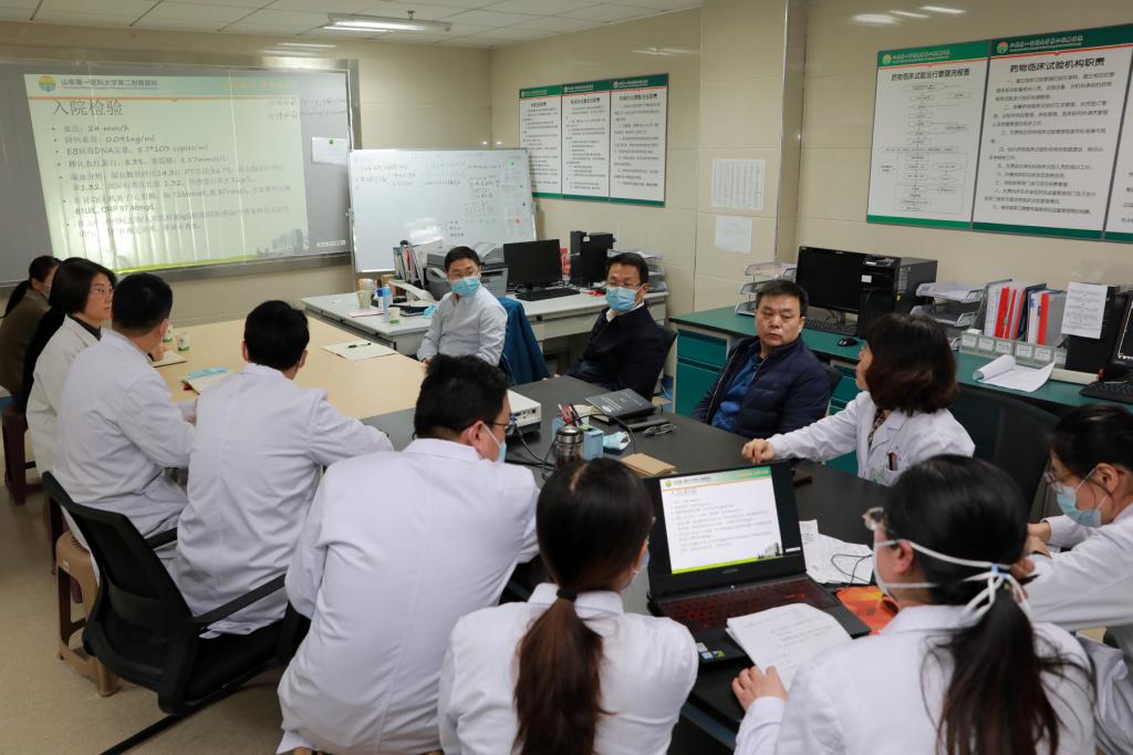 1月22日,我院感染性疾病科就一例长期不明原因发热病人进行了多学科会诊(Multi disciplinary team MDT)。特聘长江学者青年专家、长江学者特设岗位专家、泰山学者特聘专家、山一大公共卫生学院院长史卫峰教授团队应邀出席活动。党委书记徐民出席会议。呼吸科主任孟玲教授,血液科主任张志瑢教授、朱锋教授,感染科专家王会亮教授、李志刚副主任医师,医学影像科秦健副主任医师,风湿科陶蕾副主任医师,临床药师李长秀,参加会诊指导。医务处主任房振胜主持讨论会。