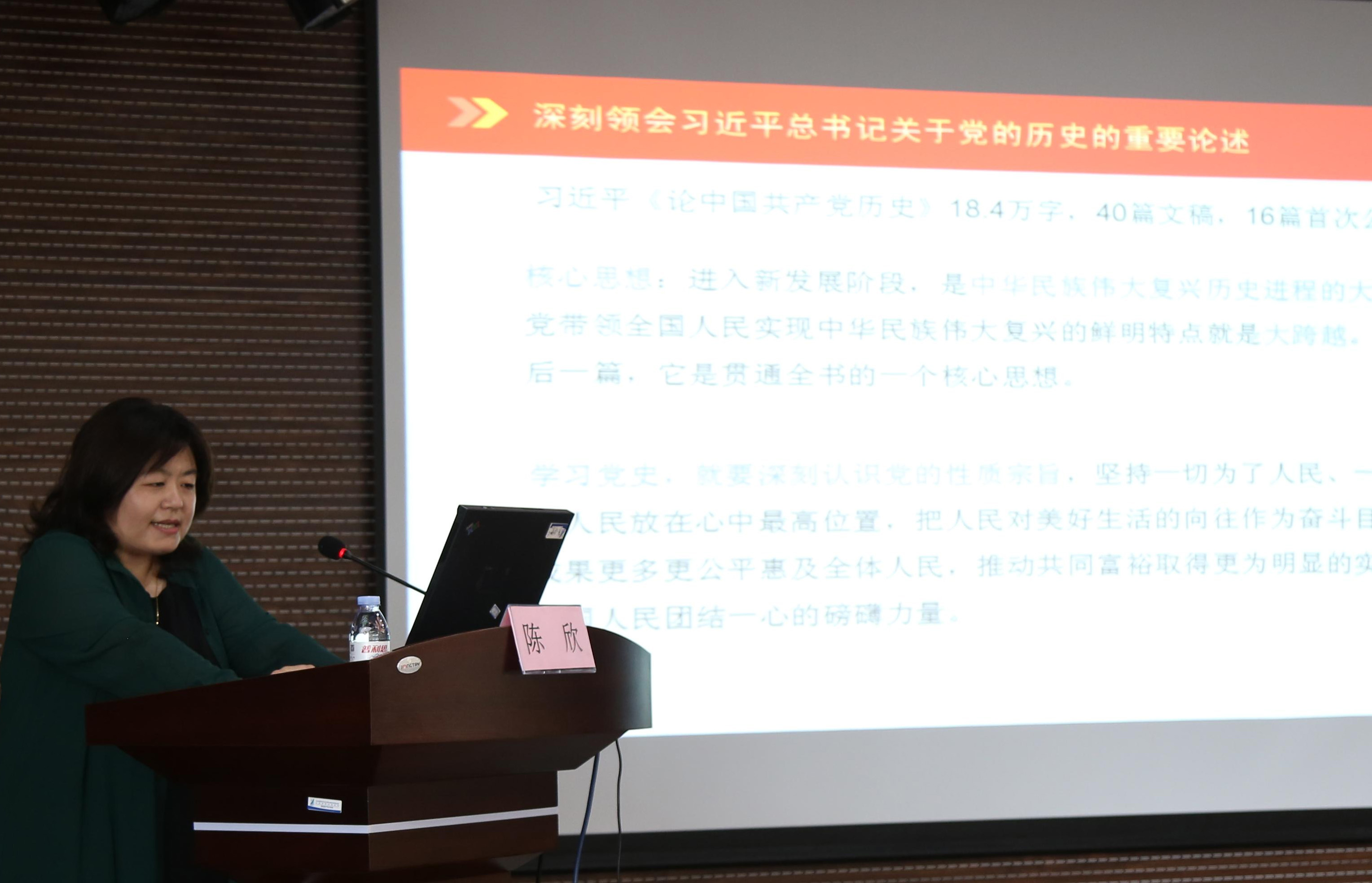 陈欣书记以“回望百年征程,凝聚前行伟力”为题,从深刻理解开展党史学习教育的重大意义、深刻领会习近平总书记关于党的历史的重要论述、“四个时期,四件大事”、“不忘初心,砥砺前行”四个部分对党史学习教育进行了系统讲解,全面地回顾了党的历史,阐述了党在各阶段形成的重大理论成果和历史经验,充分论证了党的百年史就是一部践行初心使命的历史,是党在百年历史新起点,带领全党全国人民全面建设社会主义现代化国家的宝贵精神财富。