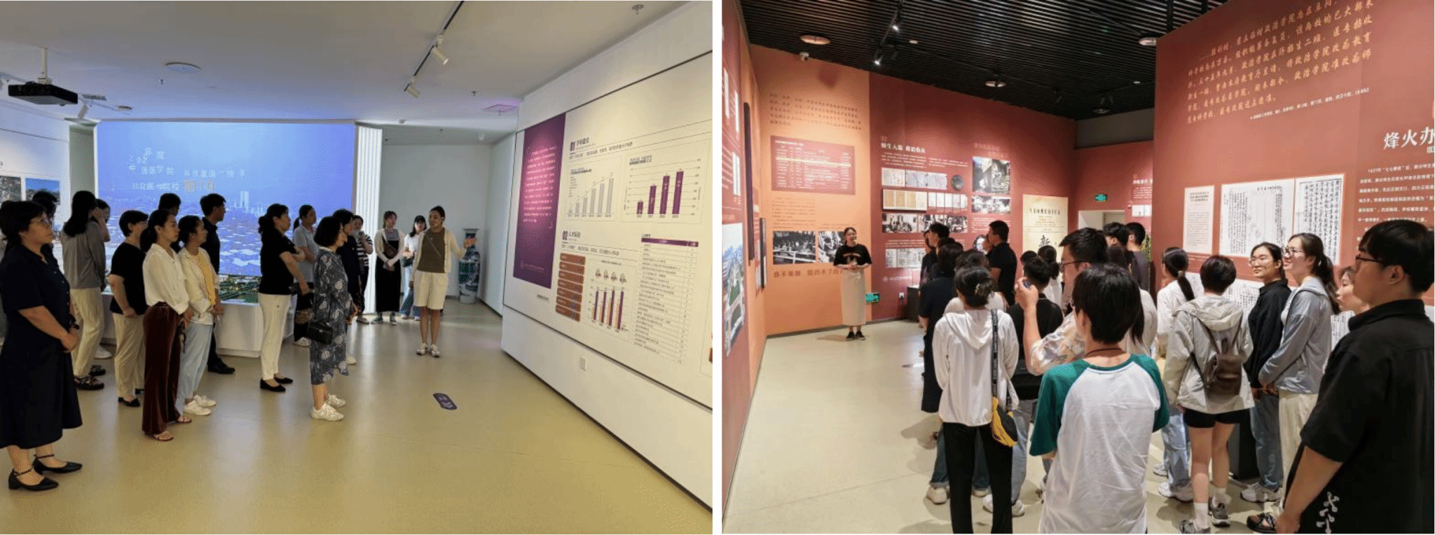 活动中,护士们和党员们一起参观了山一大校史馆,场馆整体布展以史为主线,分为序厅、追本溯源、共谱华章、蝶变成势、山一大人等展区,生动展现了校(院)自1915年山东省立医学讲习所创立以来的百年辉煌春秋和栉风沐雨、弦歌不辍的办学历程。跟随着讲解员的介绍,大家沿着历史足迹,深入了解校(院)百年医脉传承中形成的“一个家谱,五个故事”的详细内容,全方位领略山一大心系国家、造福人民、自强不息、艰苦卓绝的百年发展奋斗史。看到在过去艰苦的环境下,一代代山一大人通过艰苦奋斗所取得的辉煌成就时,大家深深被这种“自强不息”的山一大精神所感染和折服。