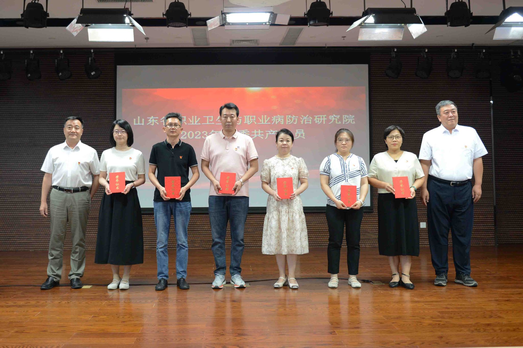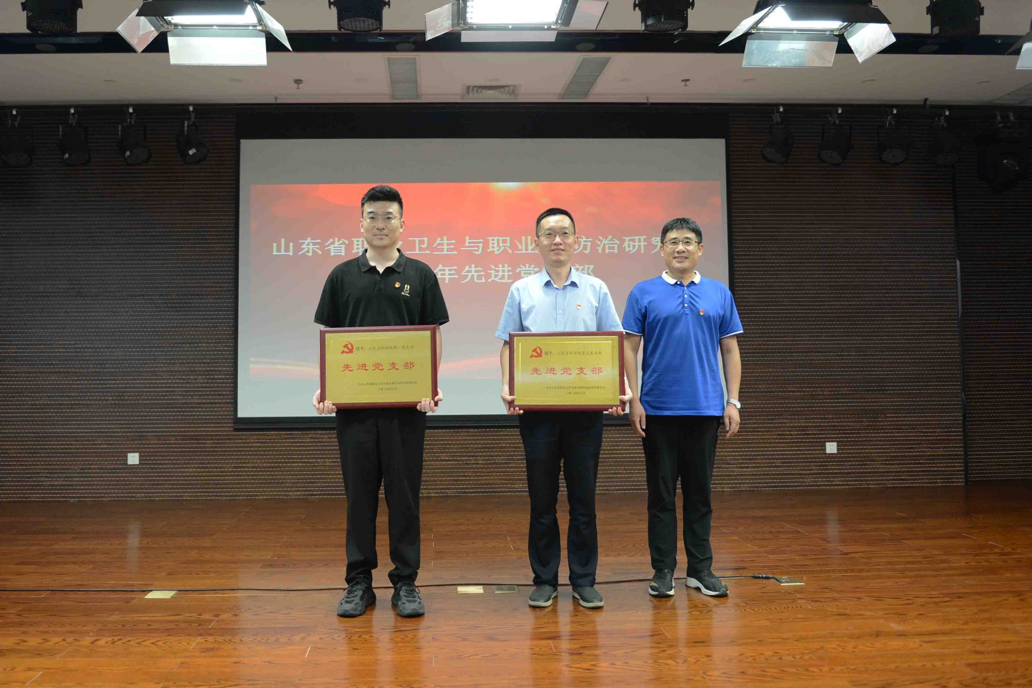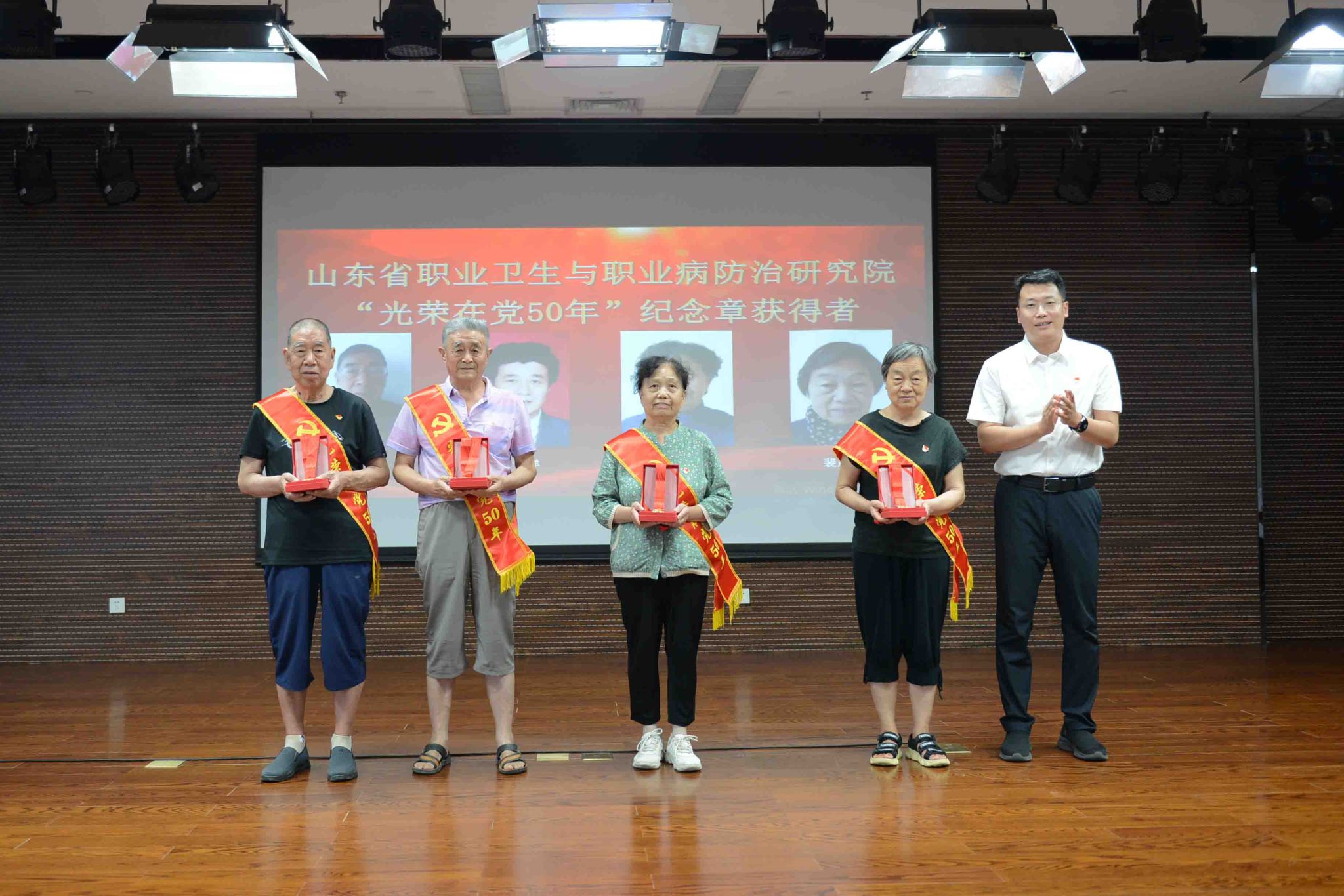 职防院党委副书记单永乐主持会议,并宣读了“光荣在党50年”党员名单和《山东省职业卫生与职业病防治研究院关于表彰2023年度优秀共产党员、优秀党务工作者、先进党支部的决定》。党委领导班子成员为受表彰的先进党支部、优秀党务工作者和优秀共产党员颁发了奖牌和证书。