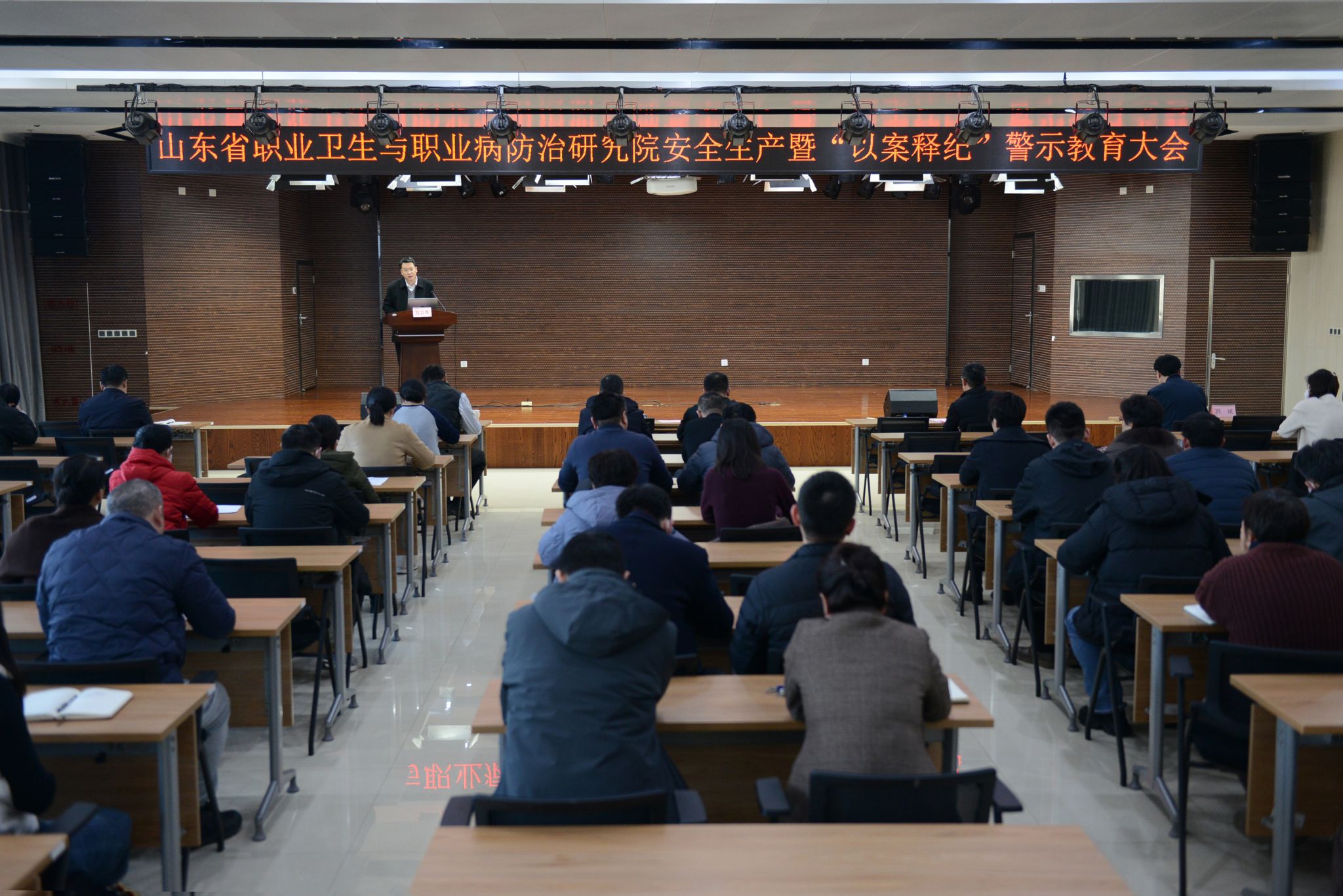 为进一步压实压紧安全工作责任,筑牢廉洁自律防线,确保全院各项工作平稳、有序推进。1月7日,山东省职业卫生与职业病防治研究院召开安全生产暨“以案释纪”警示教育大会。职防院党委副书记单永乐主持会议,全院党政领导班子、中层干部等70余人参加会议。