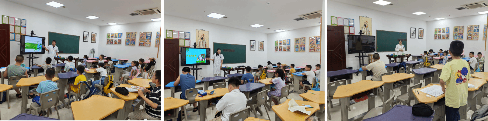 康复科医师通过“实物教学+互动体验”的形式,带领孩子们学习中医起源、认识常见中草药、了解节气养生知识,学习保健穴位按摩、体验艾灸/推拿/耳穴压豆等中医特色疗法。孩子们亲手触摸中药材,学习按压合谷穴、足三里等保健穴位,在趣味互动中理解“治未病”的中医理念,多期课程层层递进,让同学们在动手实践中感受传统文化的博大精深。