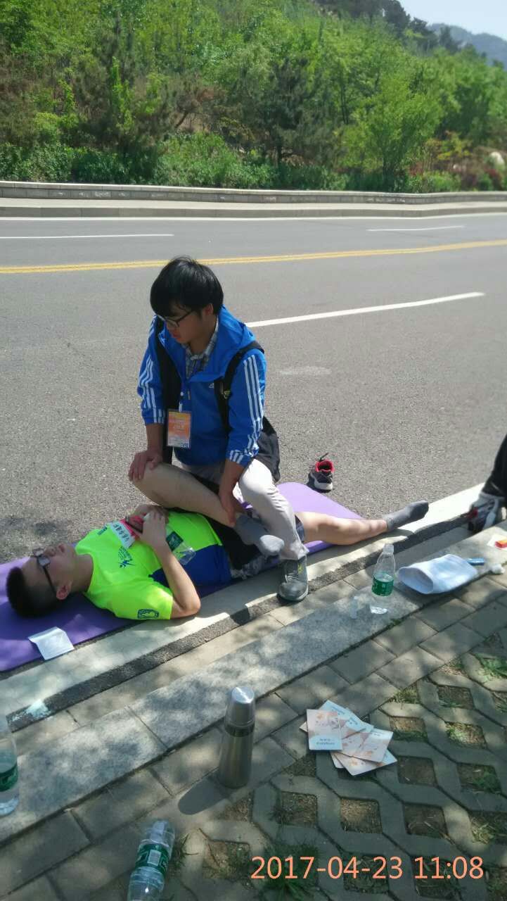 4月23日早上8时,“山东华通杯”2017泰山国际马拉松赛鸣枪开跑,来自22个国家的近2万人齐聚泰山脚下参加此次比赛。比赛由中国田径协会、山东省体育局、泰安市人民政府主办,泰安市体育局等十二家单位运营,山东华通集团冠名。我校运动医学与康复学院“岱下之翼”青年志愿者服务队有155名志愿者参与此次活动,承担本次比赛的赛前运动损伤防护和赛后疲劳恢复服务工作。