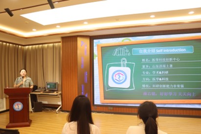 在沈晓彤老师的带动下,科创中心的老师和新生们逐一进行了自我介绍,现场气氛十分活跃。之后,沈老师从角色转换、培养模式、身心健康、安全教育四个方面为同学们进行了适应性教育。