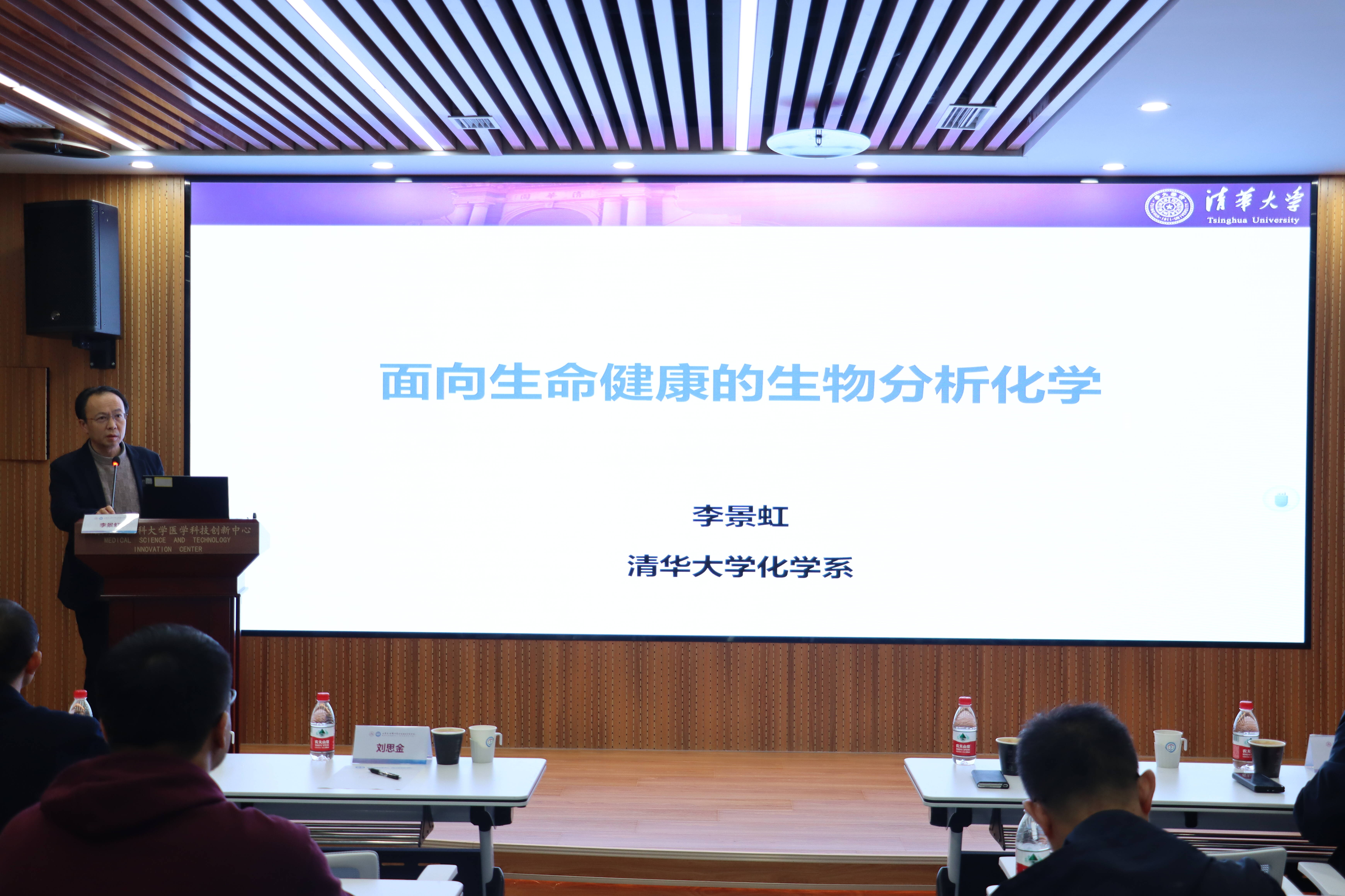李景虹作了题为《面向生命健康的生物分析化学》的主旨报告。他从核酸成像与POCT检测、分子探针筛选与化学合成、单细胞多组学技术、纳米生物技术与疾病治疗和单分子生化检测技术与仪器等五个方面系统性介绍了面向生命健康的生物分析化学平台。李景虹结合自身研究历程,为与会师生深入剖析了建立自主知识产权的脂质纳米颗粒库、微生物检测仪、显微成像系统等重要材料库和设备的重要性和必要性。他表示,创新技术的发展为生物标志物分析、临床医学检测与药物研发提供技术支撑,从而解决重大疾病的基础科学问题,推动诊断与治疗方法的发展。