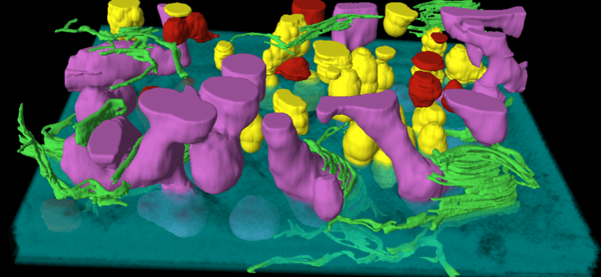 传统的电镜样品制备方法采用的是化学固定和化学染色法,固定剂的介入会使得样品的超微结构发生变化,常规醛类及锇酸固定、有机试剂梯度脱水会也会给样品的观察带来人为干扰,使得样品结构失真。超低温冷冻技术(Cryo)可以在极短时间(30ms)使200μm厚度的生物样品充分玻璃化,从而保证固定下来的样品非常接近原始状态。采用Cryo-FIB技术可以得到样品的最真实的三维超微结构,反应出生物体内的最原始的三维信息。蔡司的Cryo技术可以和光电联用相结合,让样品即使在Cryo状态下也可以被快速定位和找回,并实现光镜和电镜的结果叠加。