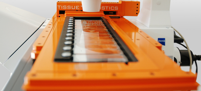 TissueFAXS全景组织细胞定量分析系统实现了玻片自动全景成像与组织量化分析合二为一,在亚细胞、细胞、多细胞组织结构等多个层次对组织样本标记marker(蛋白、核酸等)、组织细胞形态、细胞空间分布等生物学信息实现了前所未有的精准量化。系统样本兼容性广泛,可处理IHC、IF、HE、Masson等各种标记样本,适用于冰冻切片、石蜡切片、培养细胞、TMA组织芯片和细胞涂片等。已成功的应用到癌症、神经、免疫学、心脑血管、发育生物学、代谢生理学、泌尿、药物研发及临床诊断等研究领域,并在哈佛大学、麻省理工学院、海德堡大学、霍华德休斯医学研究所及国内医学科学院、复旦大学等诸多名校建立实验平台。