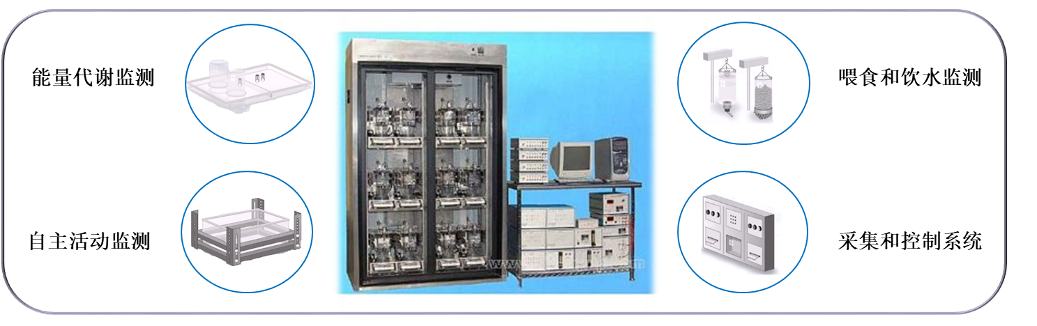 美国Columbus仪器公司生产的综合实验室动物监测系统(CLAMS)包括多功能模块,能够实现在相同条件下,对同批次动物进行24小时、全自动地、非侵入性地收集实验动物的多个生理学、行为学参数。